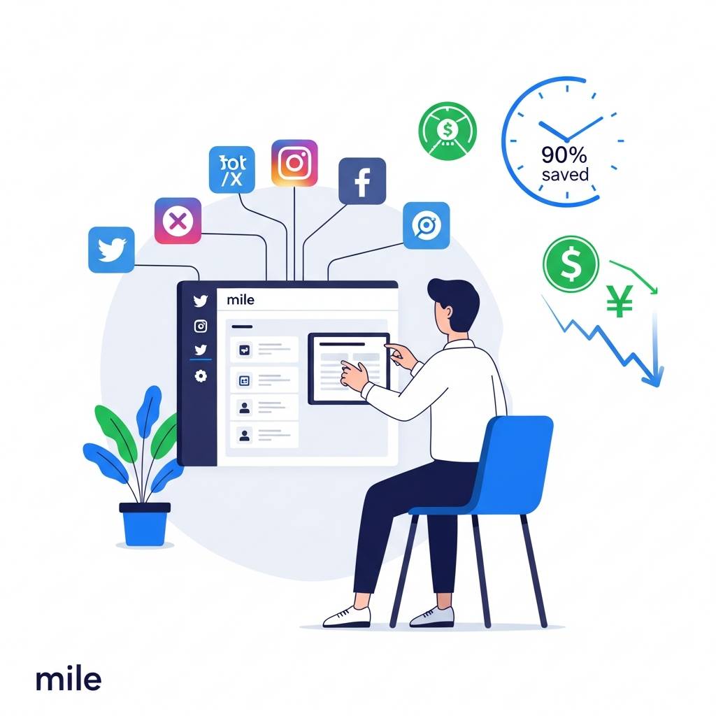 そこで今回は、SNSとブログの運用を劇的に効率化できるツール「mile」に注目します。この革新的なプラットフォームを活用することで、なんと従来の作業時間とコストを90%も削減できるという驚きの結果が得られています。しかも単なる時間短縮だけでなく、投稿の質と一貫性を保ちながら、より高いエンゲージメントを実現する方法をご紹介します。