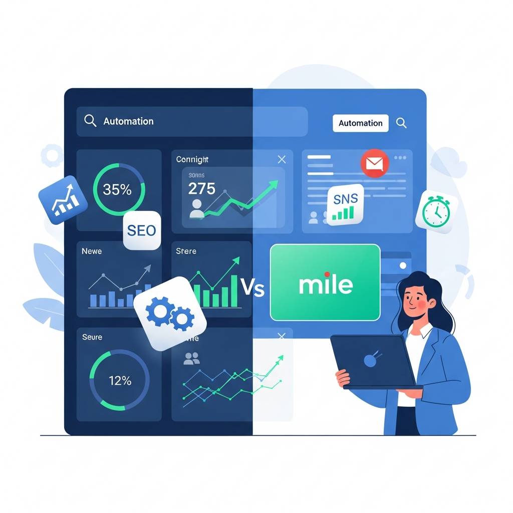 集客担当者なら誰もが感じる「時間が足りない」「効果が見えにくい」という悩み。SEOとSNS運用を両立させるのは至難の業です。そこで注目すべきは自動化ツールの活用。本記事では主要なSEO×SNS自動化ツールを徹底比較し、特に国内企業から支持を集めるmileの強みを解説します。